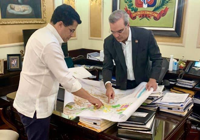 Abinader colgó un tuit en el que, junto a Collado, en calidad de presidente de la Fundación Acción, Emprende y Transforma, revisa el diseño al que fue sometido lo que era uno de los puntos más caóticos del Gran Santo Domingo.