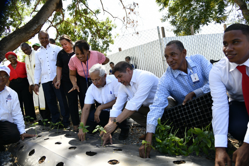Un sembrado de lechuga, apio, ajíes, coliflor, tomate, berenjena, espinacas, y otras hortalizas, conforman el huerto del liceo Unión Panamericana, en el sector Miraflores, del Distrito Nacional, desde donde el Ministerio de Educación (Minerd) arrancó de manera oficial, ayer miércoles, con su programa de “Huertos escolares”, junto al Ministerio de Agricultura.