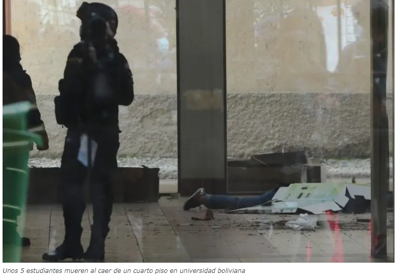 LA PAZ, Bolivia.— Al menos siete universitarios murieron y cuatro resultaron heridos el martes al caer de un cuarto piso tras romperse una baranda durante una asamblea estudiantil en la Universidad Pública de El Alto, ciudad vecina de La Paz, informaron las autoridades.