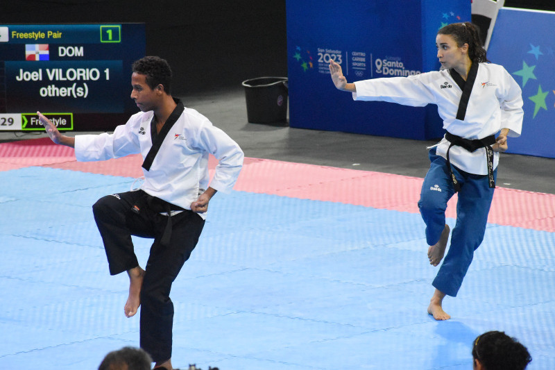 Ana Patricia Peña y Joel Vilorio de República Dominicana conquistaron la medalla de bronce en la modalidad de (poomsae), combate imaginario en el inicio del torneo de taekwondo en los Juegos Centroamericanos y del Caribe que se efectúa en la subsede de Santo Domingo.